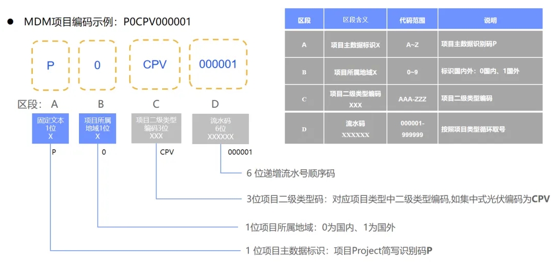 Y公司采用联邦式架构,集团MDM集中管控核心主题(如财务科目),分子公司按需扩展本地化主题(如成本中心)。以客户模型为例,设计“基本信息视图”(统一社会信用代码、法人信息)与“业务信息视图”(联系人、开票信息),并制定“标识位+分类码+流水码”编码规则。例如,客户编码为C(类型)+国家代码+6位流水号,项目编码为P+类型+国内外标识+流水号。清洗方案则结合天眼查工具补全客商法人信息,并顺利获得接口自动查重增量数据。