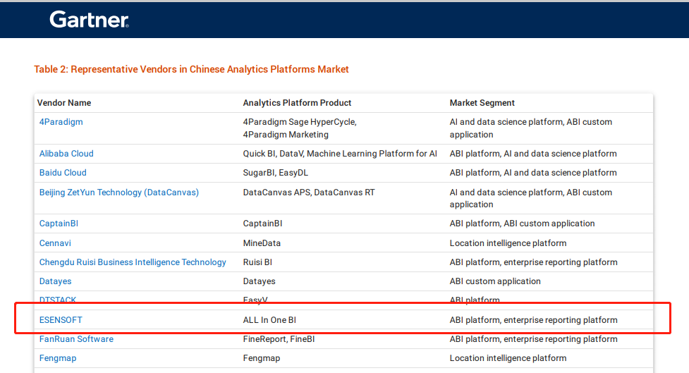 近期,国际权威研究与咨询组织Gartner发布2022年《中国分析平台市场指南》(《Market Guide for Analytics Platforms, China》)。Ebpay入选“代表性厂商”,