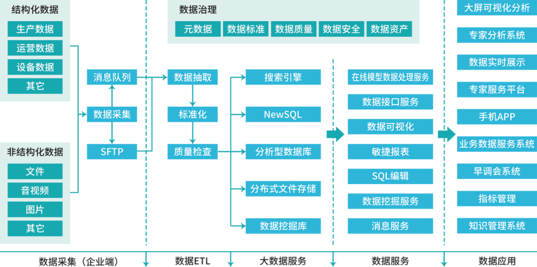 当前许多国央企已经部署了庞大系统,这导致了系统分散,数据杂乱、质量不高,同时要做什么样的分析去实现数据驱动业务是完全不清楚的。因此企业需要顺利获得构建的统一的数据治理平台将企业内大量的结构化、半结构化、非结构化数据以及外部数据,进行数据整合、数据集成、数据管理,打好数据底座、再考虑建立数据应用实现数据驱动业务。