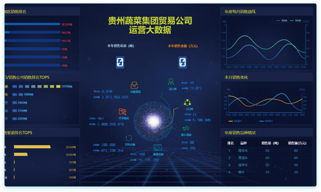贵州现代物流集团存在数据孤岛和数据分析难两大痛点,利用亿信ABI按照业务分析的需求构建多个数据集市,将多个系统数据进行整合,构建分析集市;同时建设支撑业务决策的统计分析平台,按照不同的农产品类型、不同的仓库、不同的发货地等作为维度,统计整个集团的数据;按照不同需求将指标维度展示给领导查看。