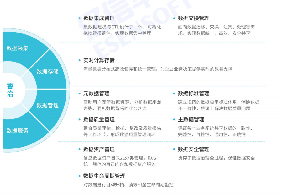 睿治数据治理平台是Ebpay自主研发的一款融合数据治理十大产品模块,覆盖数据全生命周期管理的应用平台,也是现在国内功能齐全的数据治理工具,致力于帮助治理企业级数据,构建起标准落地、质量可靠、资产融合的