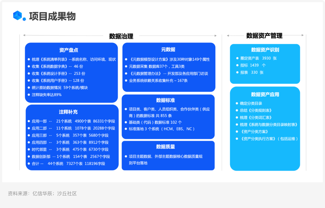 (3)顺利获得资产盘点,分析集团现在总体数据规模和分布情况;基于盘点结果,发现问题,制订解决方案。并且对所有数据进行注释补充工作,帮助理解数据含义,让数据真正做到为业务赋能。