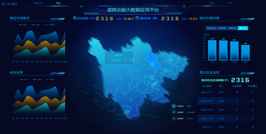 数据大屏,对内是企业运维透明化的看板、业务决策的驾驶舱,对外是展现运营形象的窗口。