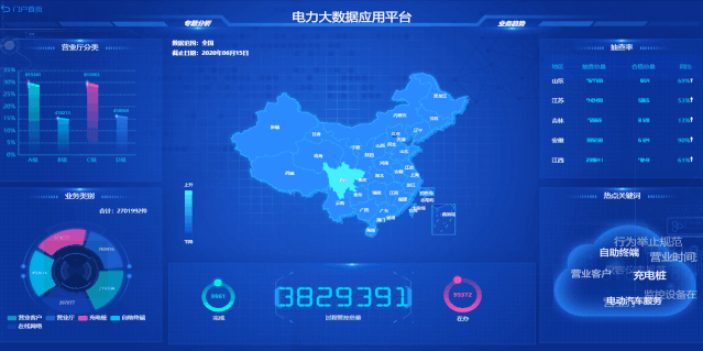 酷屏支持整合电力部门现有信息系统的数据资源,覆盖基建、运检、调度、生产、营销、安监等多个业务领域。针对领导视察、迎检汇报、客户参观等情景,支持灵活构建可视化汇报主题,并可给予多种可视化手段,对电网侧数据、用户侧数据、泛在电力物联网建设应用成果、保电任务、应急处置流程等内容进行动态展示。