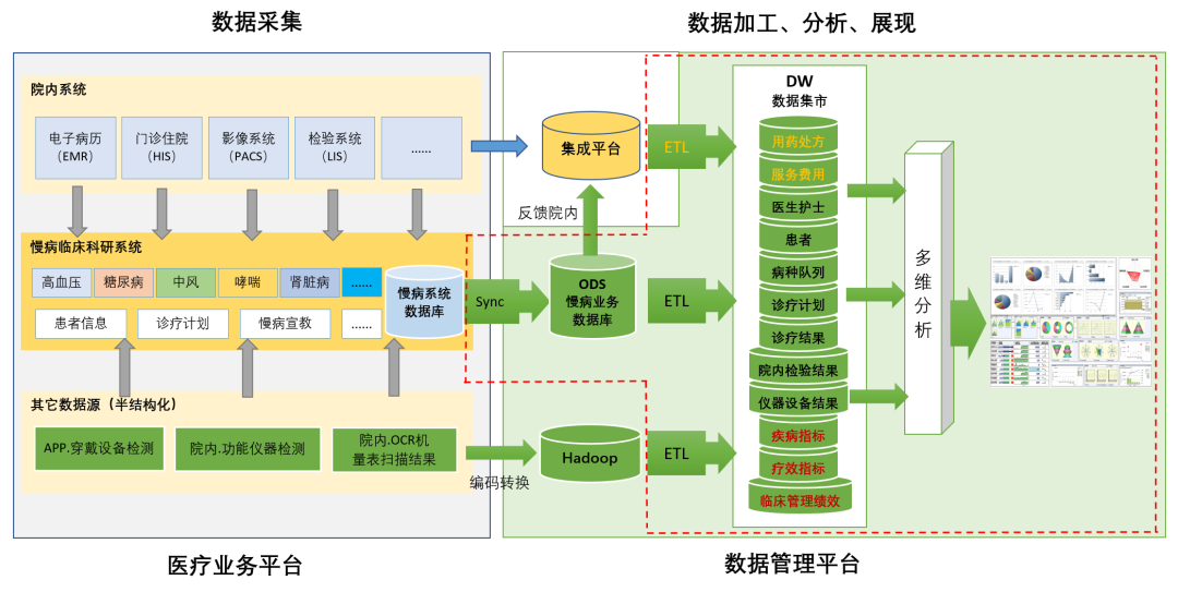 添加ETL作业调度,每天定时从医院集成平台、慢病业务ODS库、其它数据源进行数据抽取、更新,形成DW数据仓库