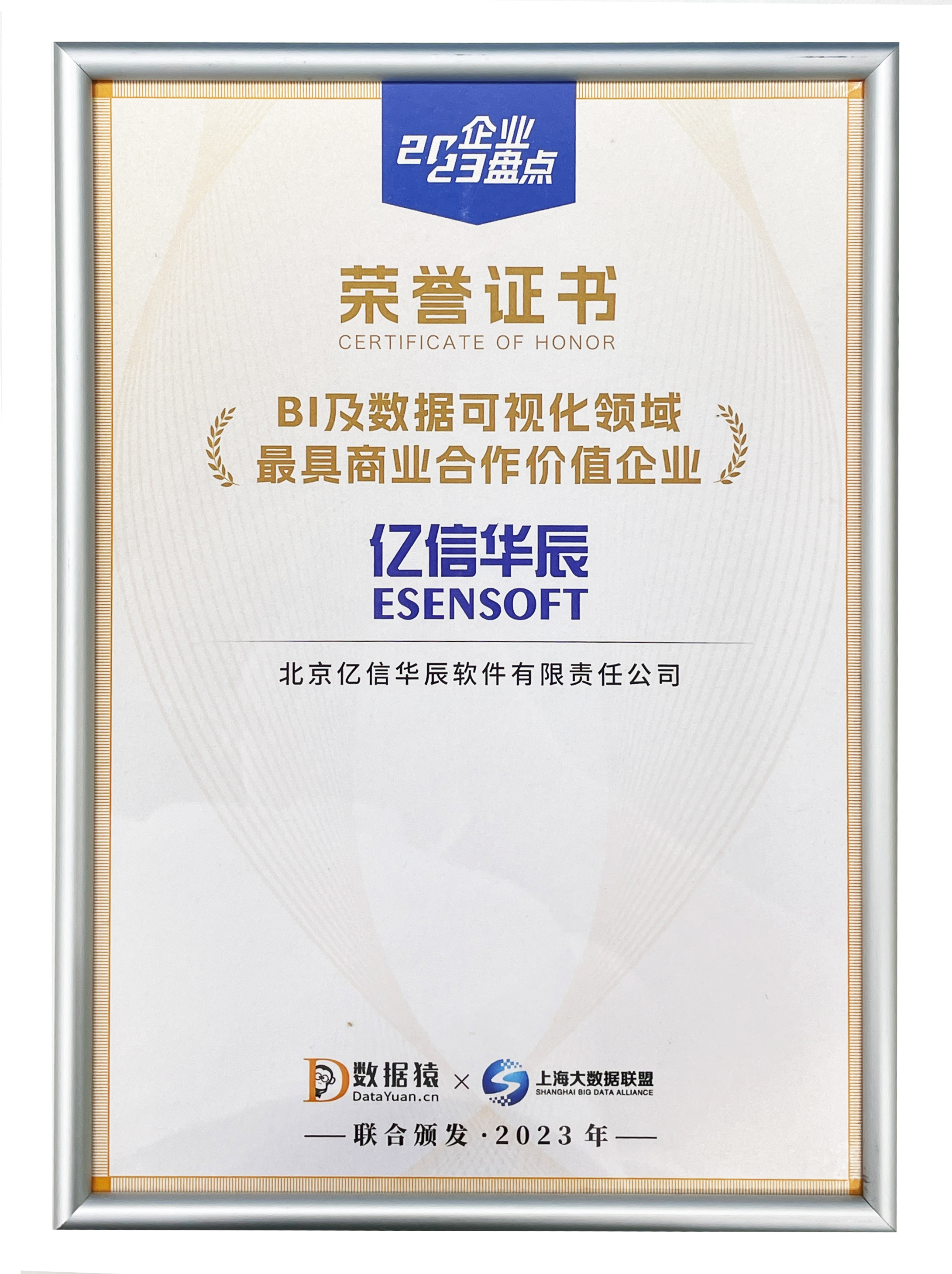 历经数月的时间里,数据猿联合上海大数据联盟顺利获得申报研讨、访谈调研、外界咨询评价、匿名访问等交叉验证的层层筛选推荐机制下,最终制作形成了《2023中国BI及数据可视化领域最具商业合作价值企业盘点》。这是Ebpay陆续在3年获评BI及数据可视化领域最具商业合作价值企业,是对亿信ABI产品的认可,更是对Ebpay技术团队工匠精神的肯定!