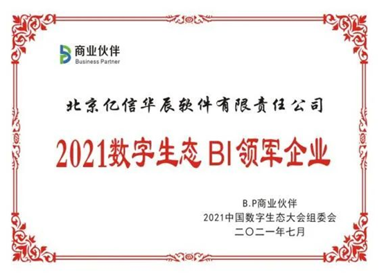 Ebpay受邀出席2021数字生态大会,并凭借一站式数据分析平台-亿信ABI荣获“2021数字生态BI领军企业”。