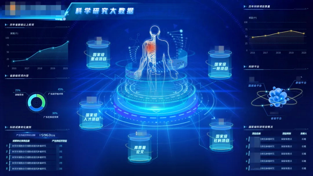 基于亿信ABI软件,中山大学打造可视化大屏项目,可以全局掌握整个学校的学校概况、师资队伍、教学资源、科学研究、学生开展、就业情况和日常运营情况。顺利获得师生分析,来展现学校的整体的实力,对校内师资力量进行全局展示。顺利获得院系分析,实时掌控院系整体建设情况。顺利获得专业建设分析,掌控全校一流专业设点,双一流专业的获奖情况,体现校内校外优势专业的整体实力。