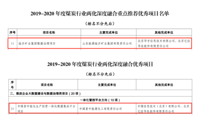 近期,中国煤炭工业协会发布2019—2020年度煤炭行业两化深度融合优秀项目的通知,公布了8类共100项优秀项目。Ebpay承建的两个项目顺利顺利获得评审,被评为优秀项目。其中临沂矿业集团数据治理项目荣获2019-2020年度煤炭行业两化深度融合重点推荐优秀项目;中煤晋中能化生产经营一体化数据集成平台项目荣获2019-2020年度煤炭行业两化深度融合优秀项目。