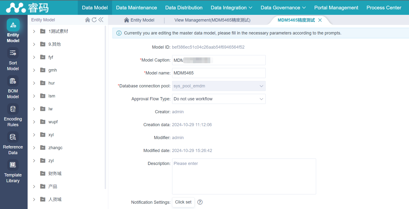 在主数据管理过程中,主数据模型字段需要遵循业务标准,这样可以确保数据在不同系统和流程的一致性,还能实现数据的全程可追溯性,为此产品支持在建立模型字段时根据数据标准建立。