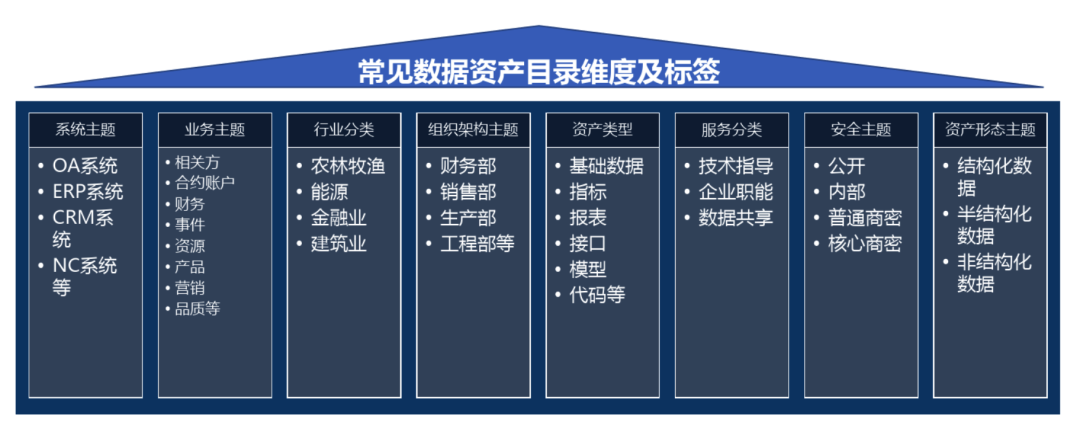 我们可以顺利获得系统主题,业务方向,行业分类,组织架构等方向,对数据资产进行分类。