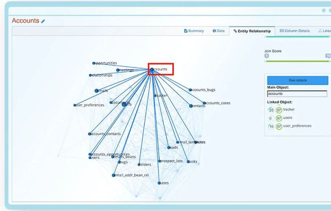 标记关系是管理数据资产的一个重要步骤,顺利获得这一步,用户可以跨多个数据库发现相关数据。例如,分析师可能需要整合的客户信息。顺利获得数据资产目录,发现五个不同系统中的都有客户数据。有了数据目录的帮助,可以构建一个实验区域,在那里可以连接所有数据,清理数据,然后使用合并的客户数据来实现业务目标。