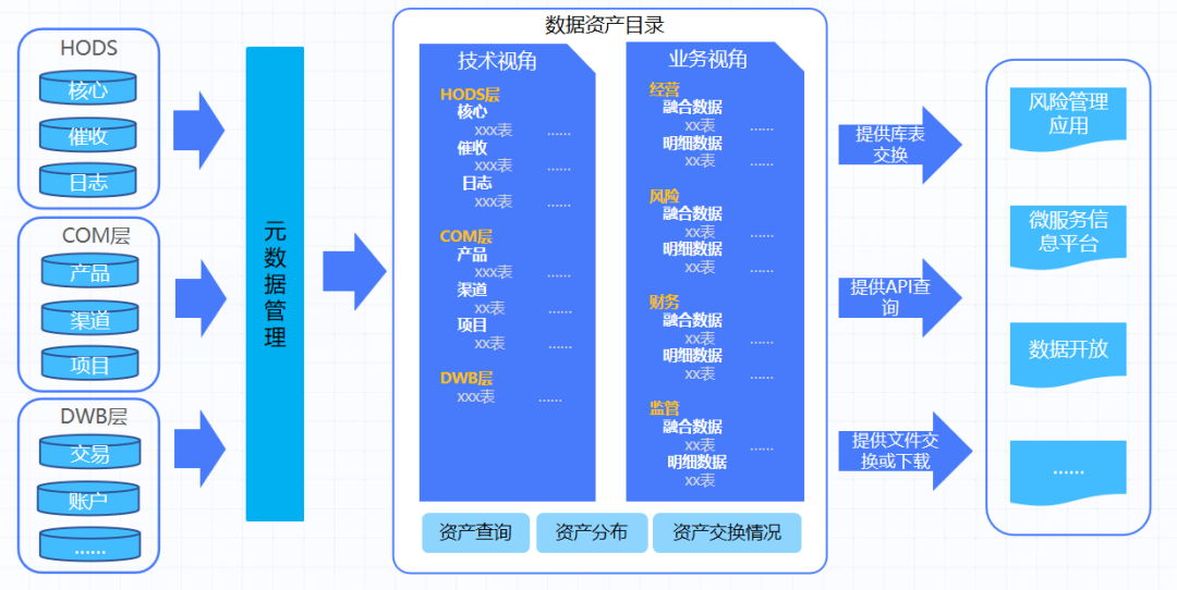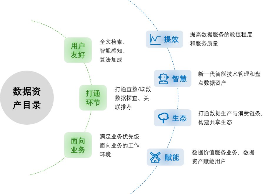数据标准、数据质量、数据安全、认责管理等数据治理信息,构建适用不同业务场景的资产目录服务;