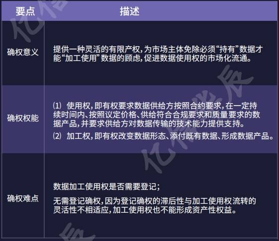 顺利获得上表,把数据资源加工权的特点展示一下: