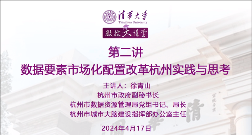 近期,清华数据大讲堂(第二讲)在清华大学公共管理学院一层报告厅圆满落幕。讲座特别邀请了杭州市政府副秘书长、市数据资源管理局党组书记、局长,杭州市城市大脑建设指挥部办公室主任徐青山先生,为大家带来了题为《数据要素市场化配置改革杭州实践与思考》的深入分享。以下根据演讲内容整理。